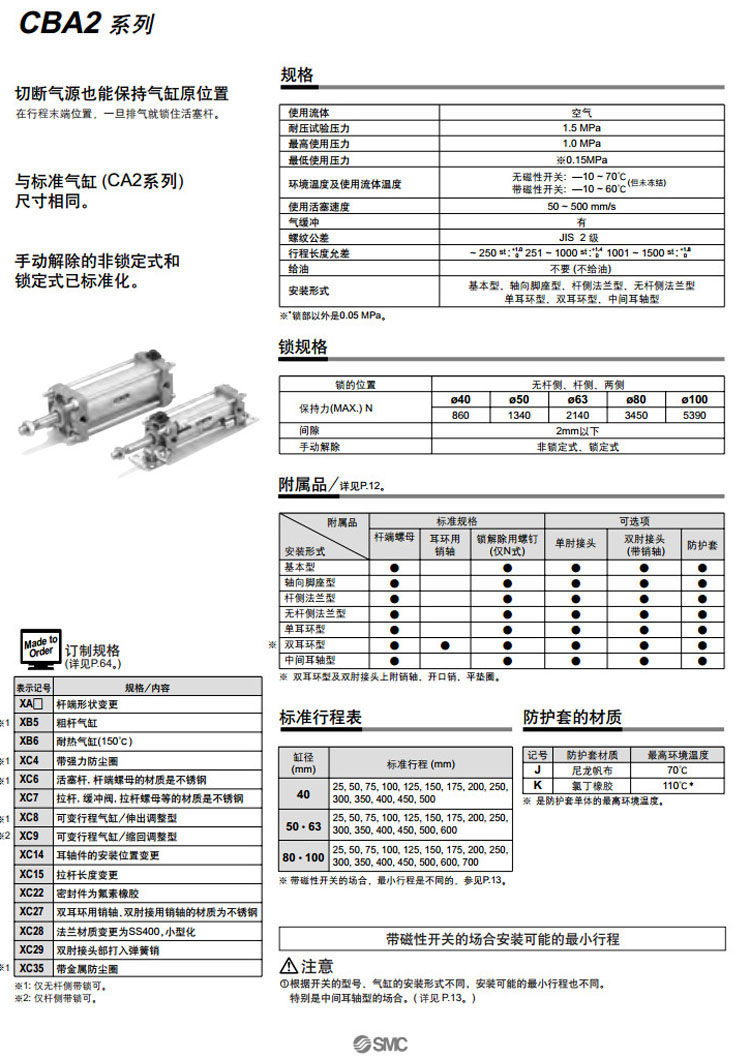CBA2D63-600,CBA2D80-600,CBA2D100-600,CBA2T50-600,CBA2T63-600,CBA2T80-600,CBA2T100-600,CBA2B80-700,SMC端鎖氣缸