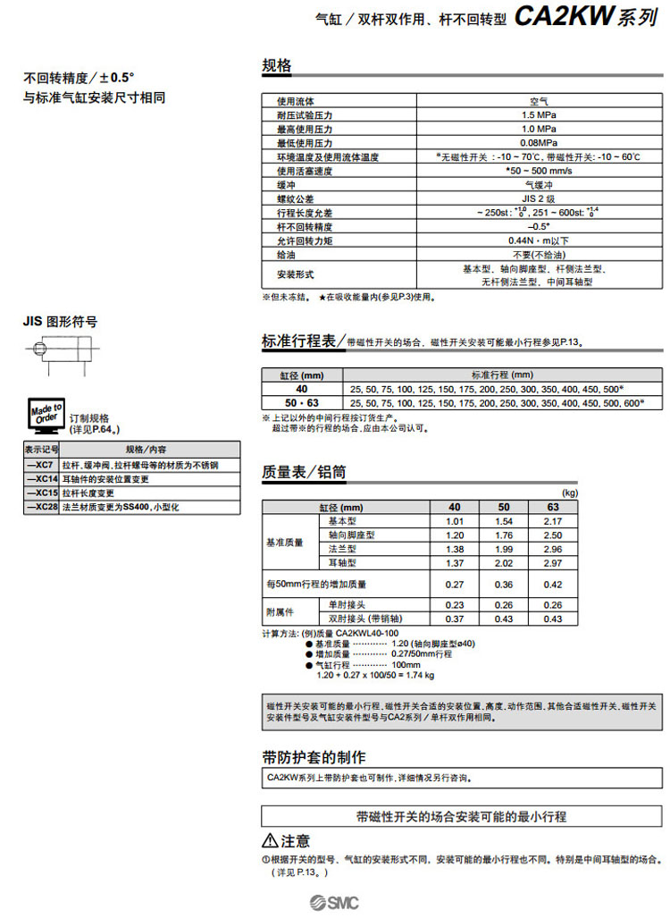 CA2KWT40-300,CA2KWT50-300,CA2KWT63-300,CA2KWB40-350,CA2KWB50-350,CA2KWB63-350,CA2KWL40-350,CA2KWL50-350,CA2KWL63-350,