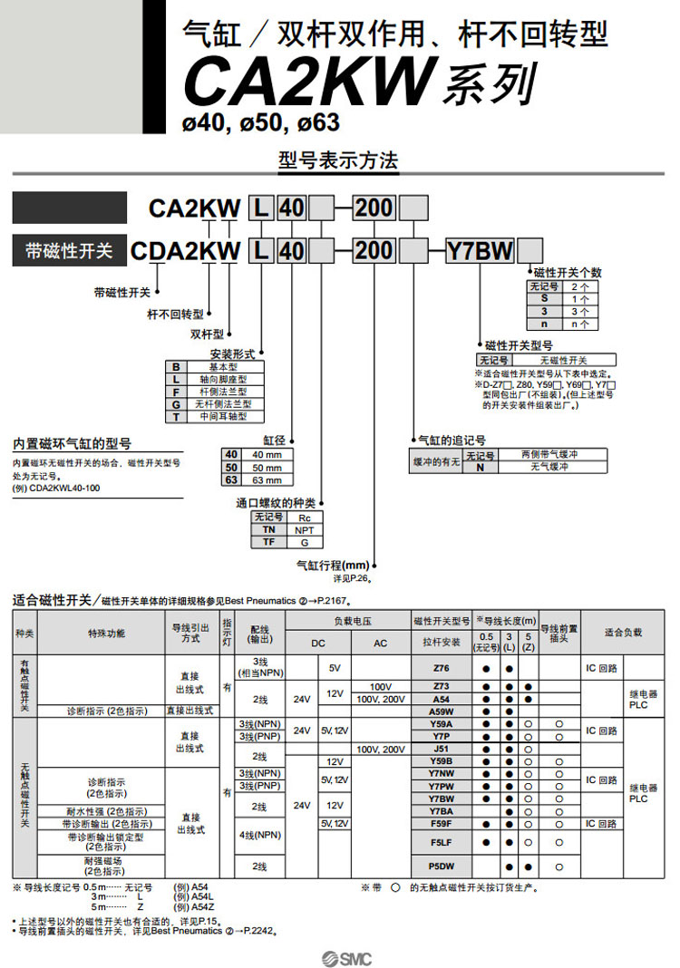 CA2KWG40-150,CA2KWG50-150,CA2KWG63-150,CA2KWT40-150,CA2KWT50-150,CA2KWT63-150,CA2KWB40-175,CA2KWB50-175,CA2KWB63-175,