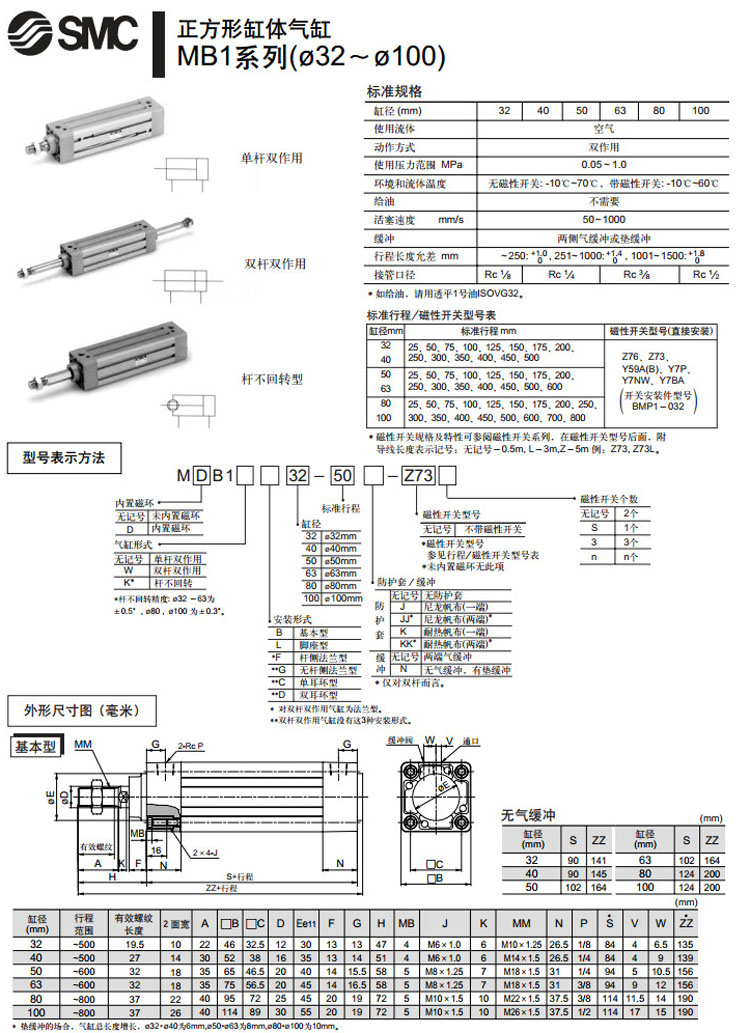MB1B100-500,MB1B100-600,MB1B100-700,MB1B100-800,MB1L32-50,MB1L32-75,MB1L32-100,MB1L32-125,MB1L32-150,