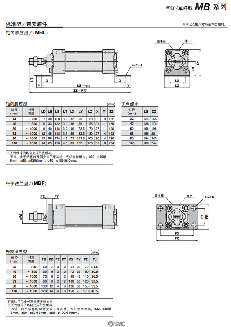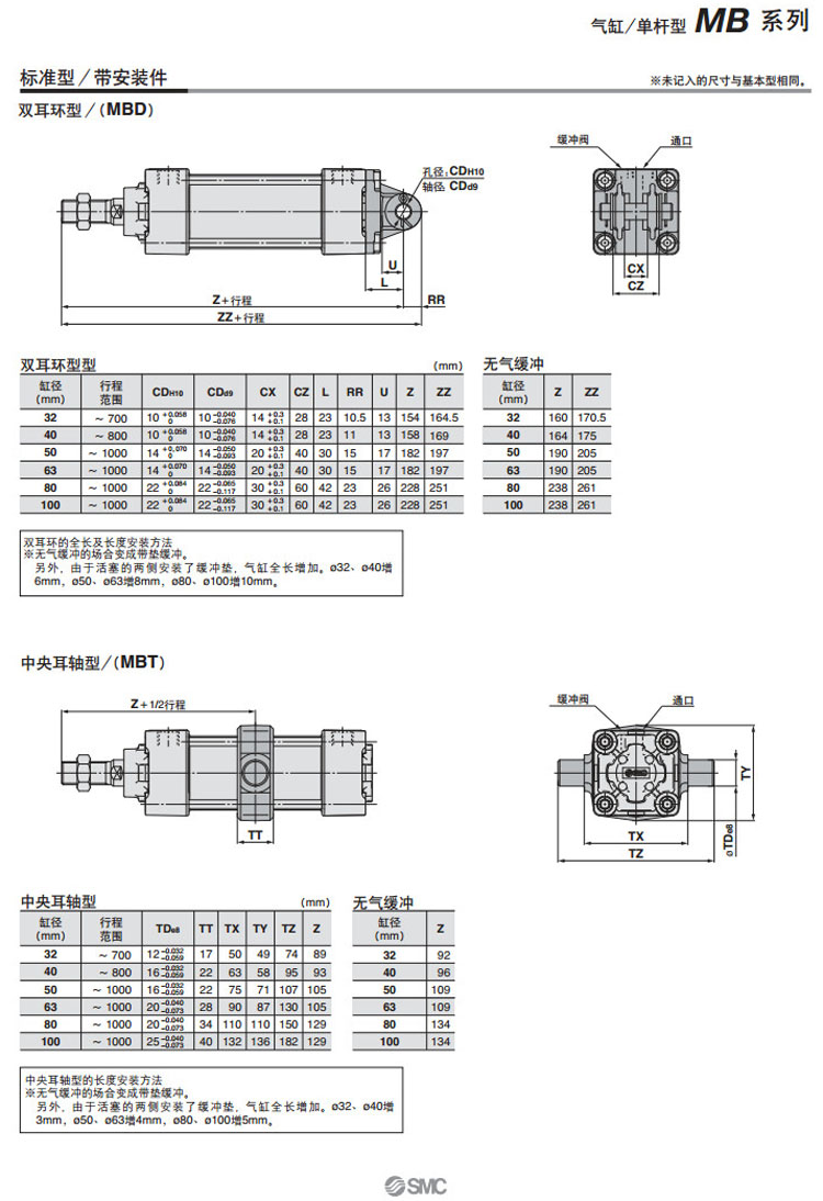 MBB32-25Z,MBL32-25Z,MBF32-25Z,MBG32-25Z,MBC32-25Z,MBD32-25Z,MBT32-25Z,SMC單桿型氣缸