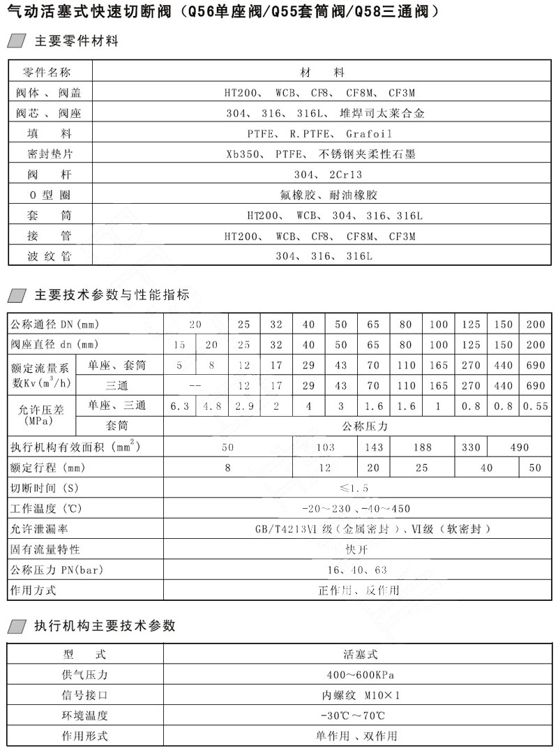 Q56-16C,Q56-63C,Q55-40C,Q55-63C,Q58-16C,Q58-40C,氣動活塞式快速切斷閥