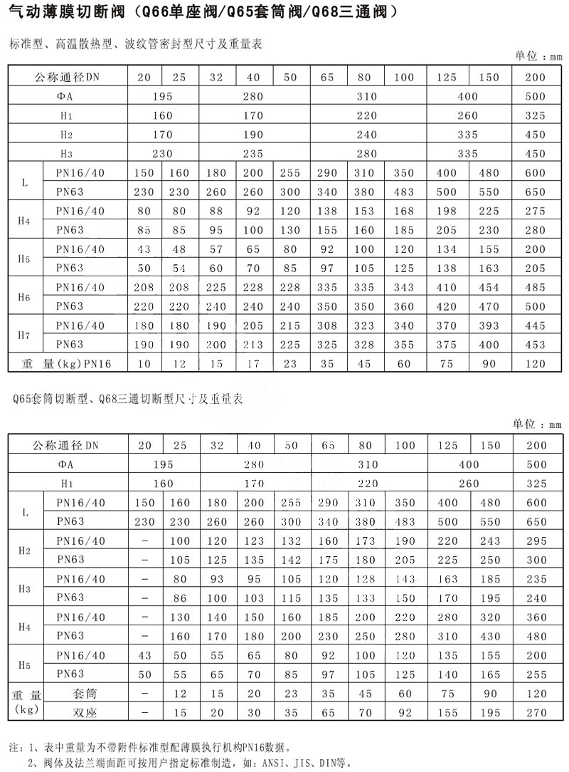 Q66-16C,Q66-40C,Q65-16C,Q65-25C,Q68-40C,Q68-63C,氣動薄膜切斷閥