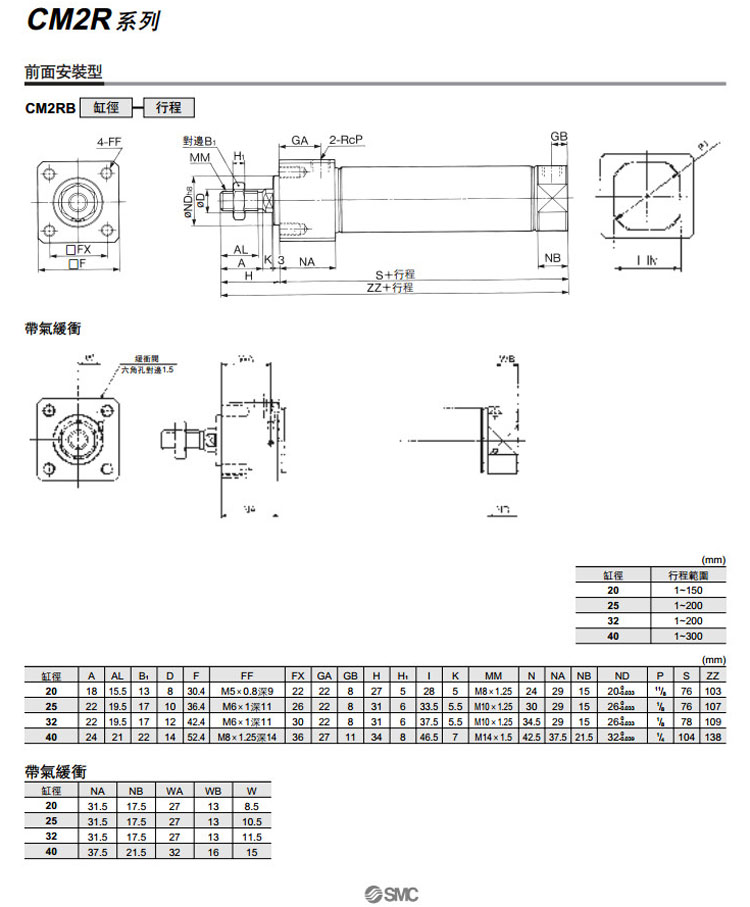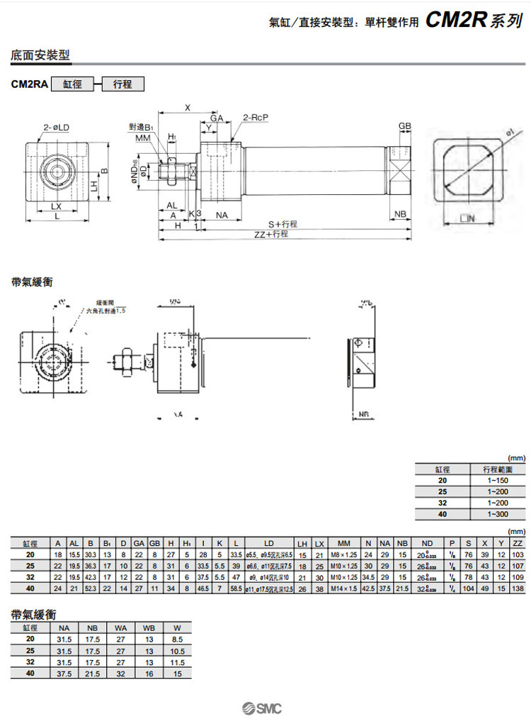 CM2RA,CM2RB,CM2HRA,CM2HRB,CDM2RA,CDM2RB,CDM2HRA,CDM2HRB,CDM2HRB40-200A,SMC標(biāo)準(zhǔn)型氣缸