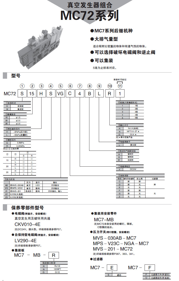 MC72-S-15,MC72-S-20,MC72-S-25,MC72-M-15,MC72-M-20,MC72-M-25,真空發(fā)生器組合