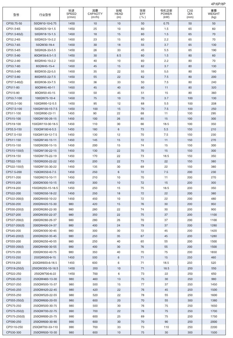 CP50.75-50,CP51.5-50,CP52.2-50,CP53.7-50,CP55.5-50,CP53.7-65,CP55.5-65,CP57.5-65,沉水式污物(泥)泵 |