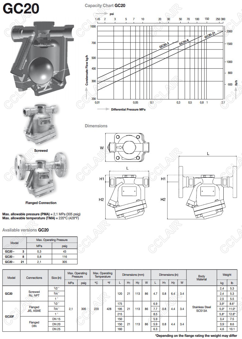 GC20,GC20F,miyawaki浮球式蒸汽疏水閥