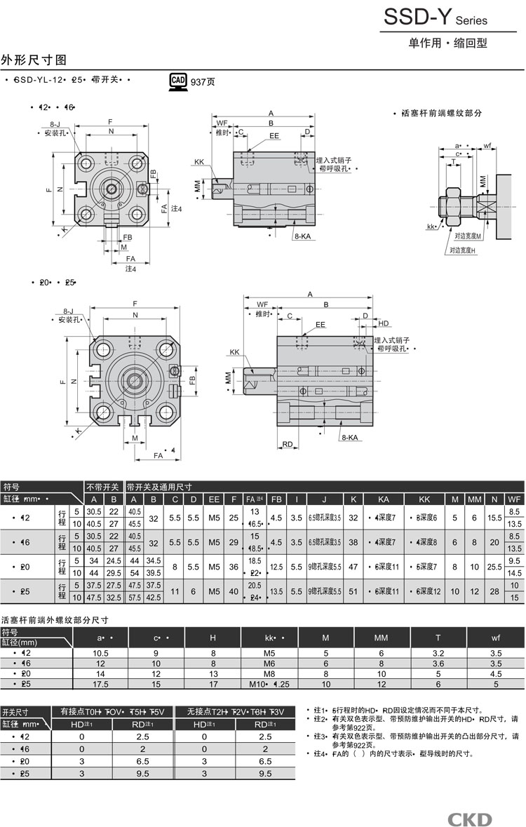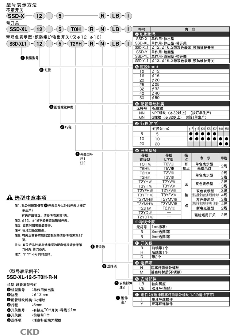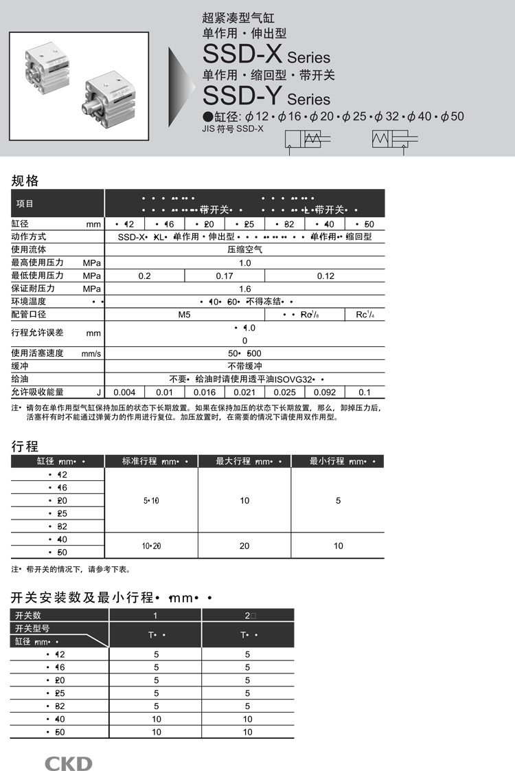 SSD-X-12-5,SSD-XL-12-5,SSD-XL1-12-5,SSD-Y-12-5,SSD-YL-12-5,SSD-YL1-12-5,CKD超緊湊型氣缸