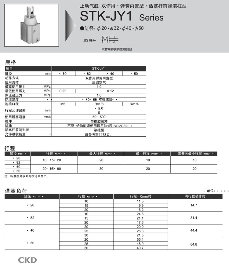 STK-JY1-20-10,STK-JY1-32-10,STK-JY1-40-20,STK-JY1-50-20,STK-JY1-20-15,STK-JY1-40-25,CKD止動氣缸
