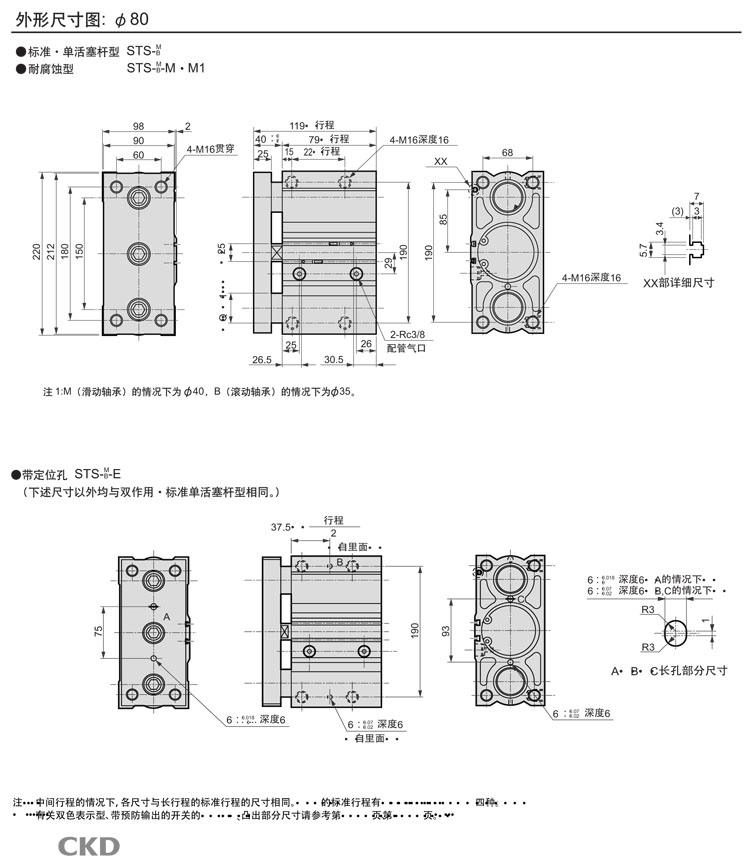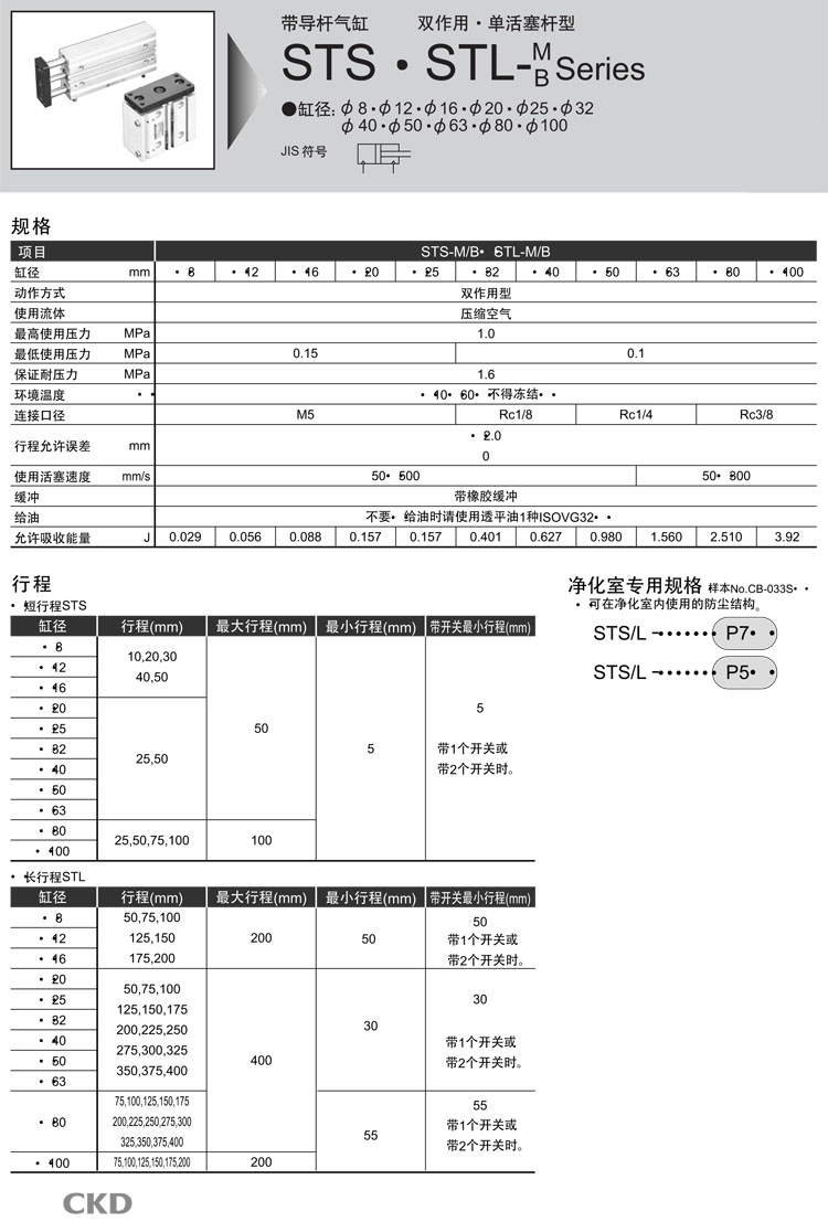 STL-B-80-75,STL-B-80-100,STL-B-80-125,STL-B-80-150,STL-B-80-175,STL-B-80-200,STL-B-80-225,CKD帶導桿氣缸