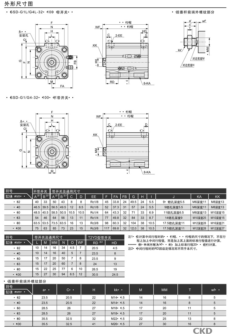 SSD-G1-25-5,SSD-G1L-25-25,SSD-G4-25-5,SSD-G4L-25-40,SSD-G4L-100-50,CKD超緊湊型氣缸