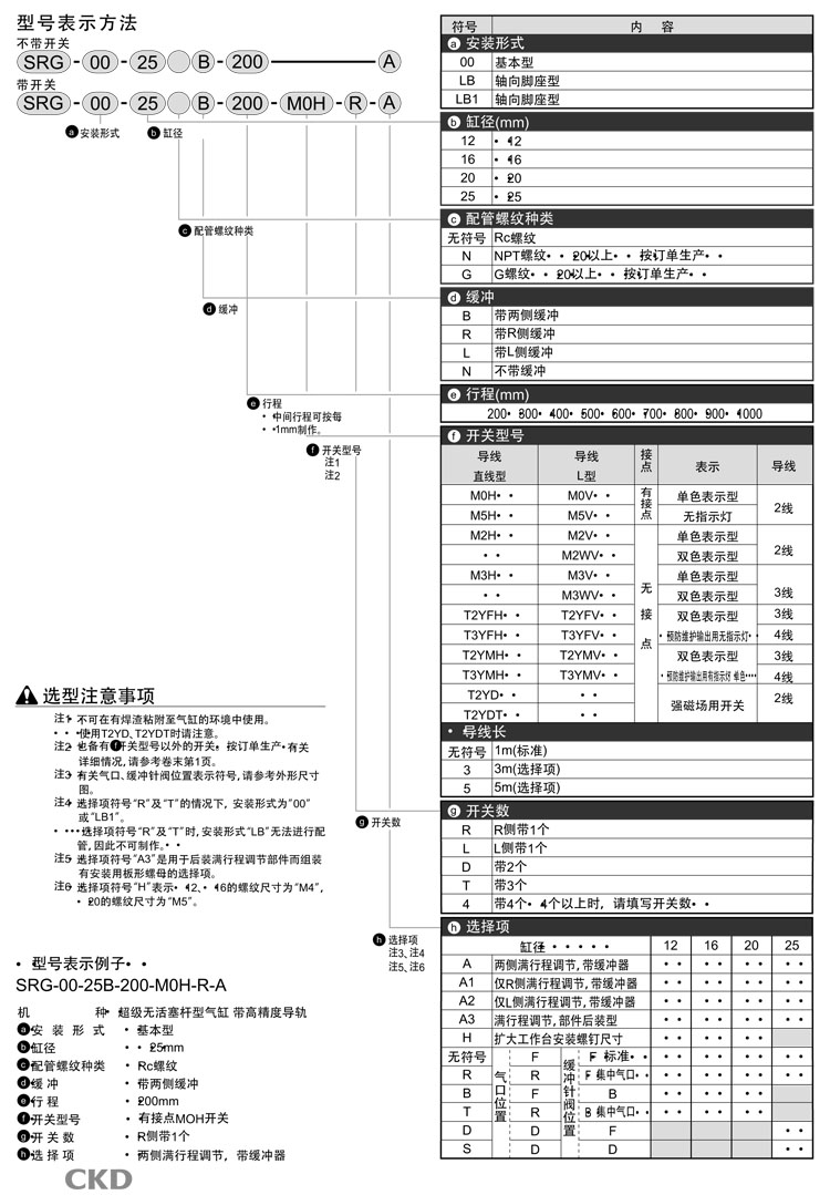 SRG-00-12B-200,SRG-LB-12B-200,SRG-LB1-12B-200,SRG-LB1-16B-1000,CKD倍力型緊氣缸