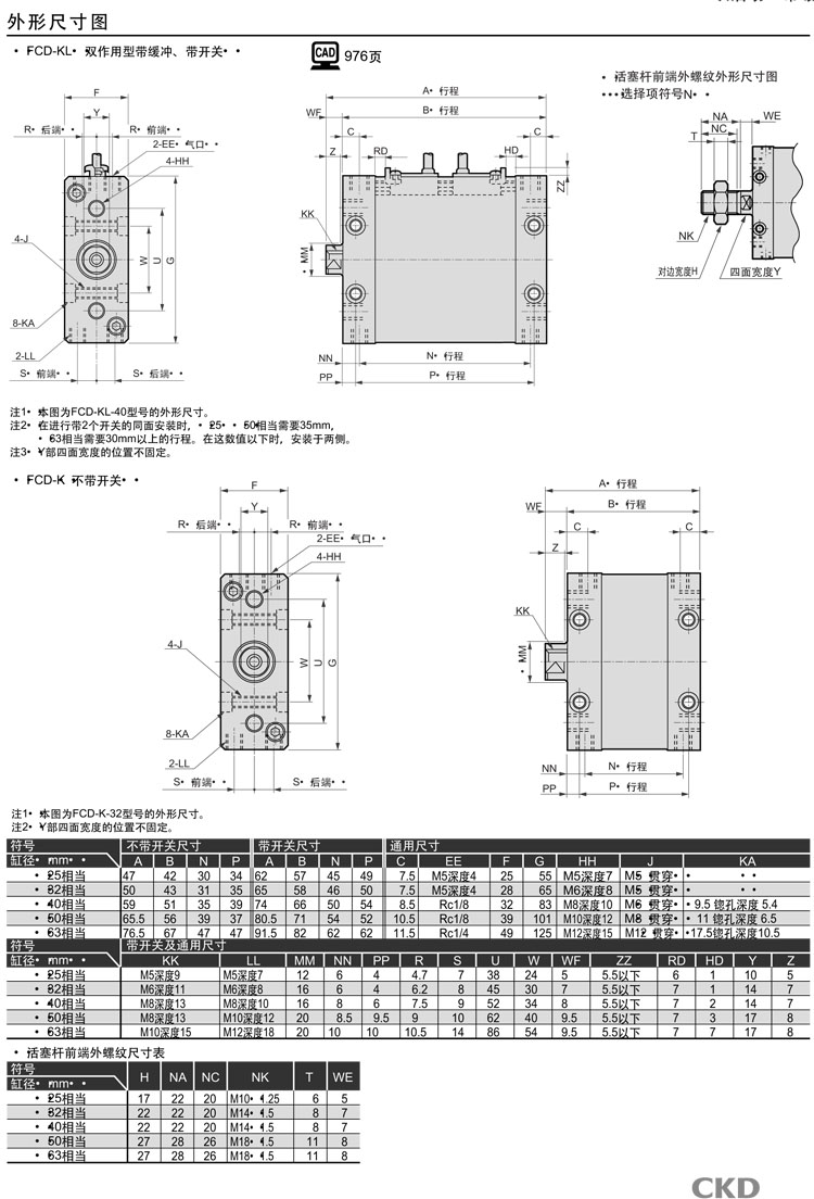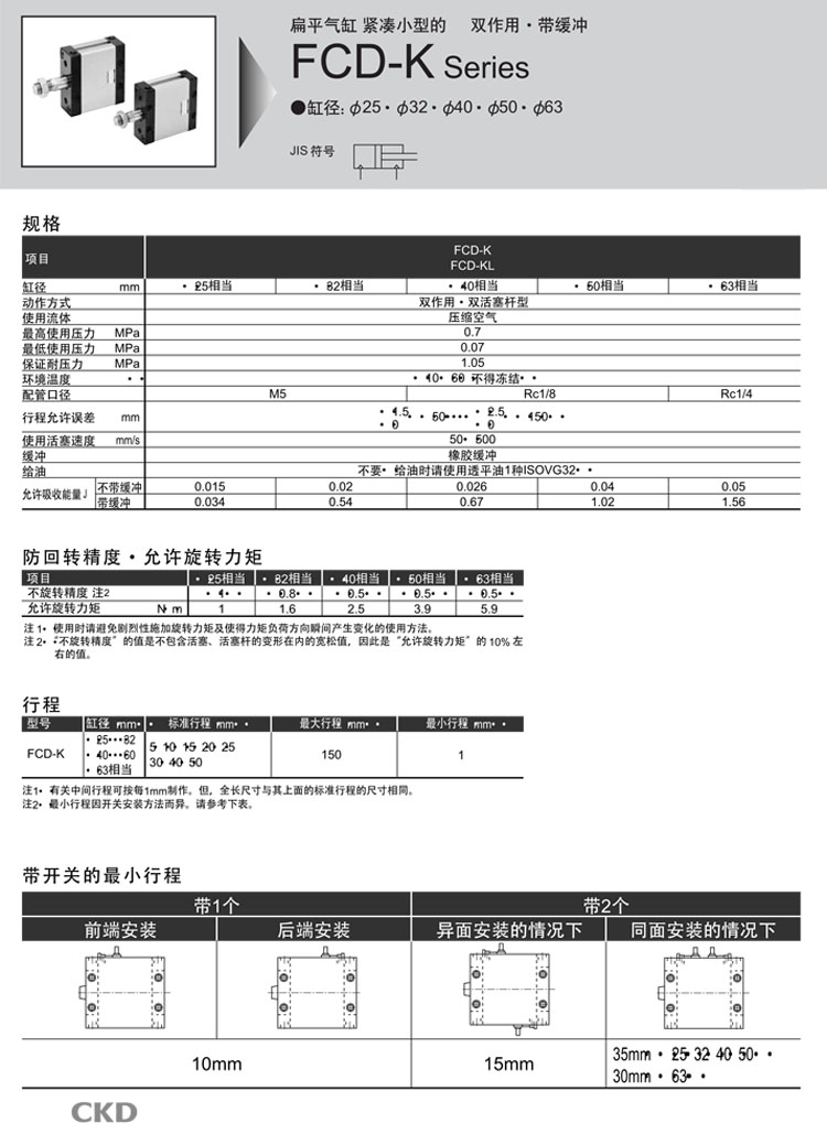 FCD-K-25,FCD-K-32,FCD-K-40,FCD-K-50,FCD-K-63,FCD-KL-25,FCD-KL-32,FCD-KL-40,FCD-KL-50,FCD-KL-63,CKD扁平氣缸