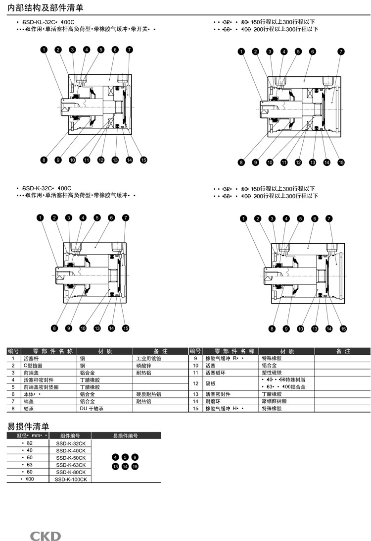 SSD-K-20,SSD-K-25,SSD-K-32,SSD-K-40,SSD-K-50,SSD-K-63,SSD-K-80,SSD-K-100,CKD超緊湊型氣缸
