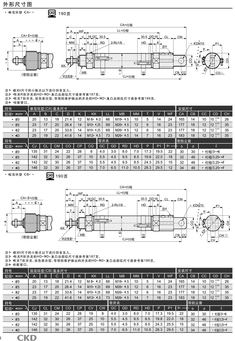 CMK2-F-00-20-25,CMK2-F-00-20-50,CMK2-F-00-20-75,CMK2-F-00-20-100,CMK2-F-00-20-150,CKD緊固型氣缸