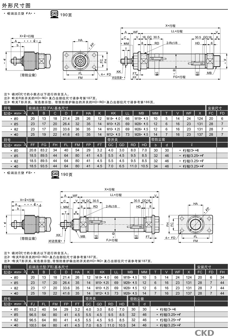 CMK2-F-TA-40-250,CMK2-F-TA-40-300,CMK2-F-TB-40-25,CMK2-F-TB-40-50,CMK2-F-TB-40-75,CMK2-F-TB-40-100,CKD緊固型氣缸