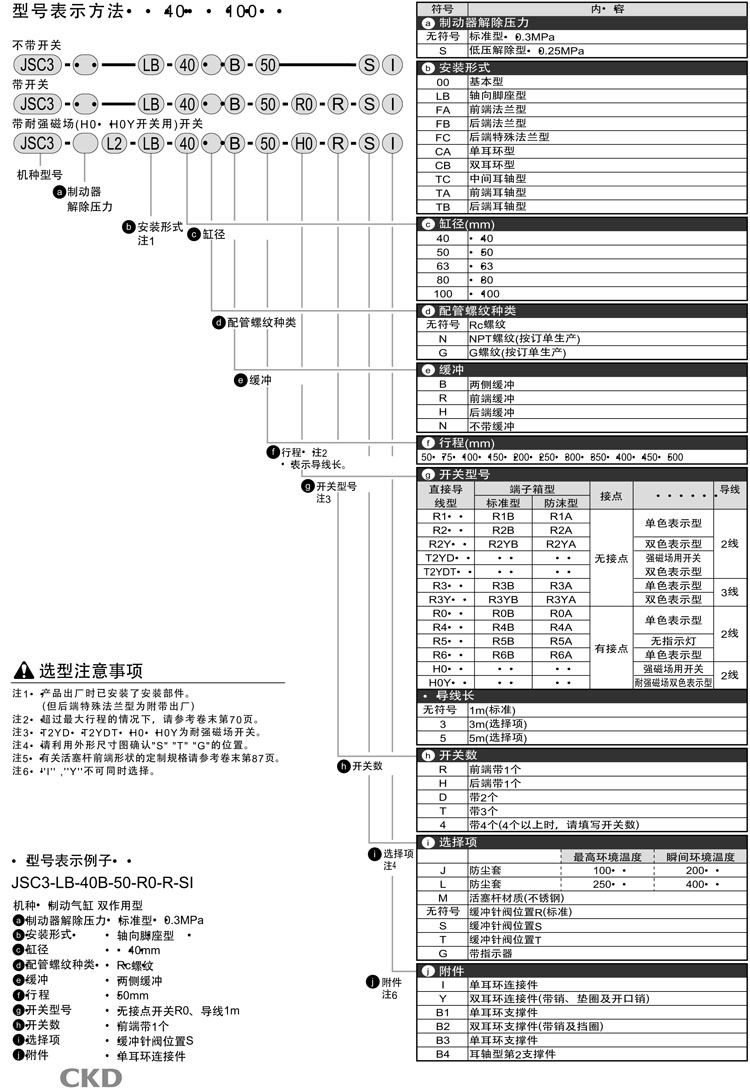 JSC3-SL2-TB-40B-300,JSC3-SL2-TB-40B-350,JSC3-SL2-TB-40B-400,JSC3-SL2-TB-40B-450,JSC3-SL2-TB-40B-500,CKD制動(dòng)氣缸