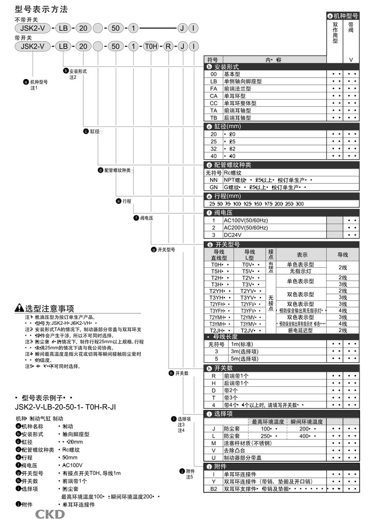 JSK2-V-00,JSK2-V-LB,JSK2-V-FA,JSK2-V-CA,JSK2-V-CC,JSK2-V-TA,JSK2-V-TB,CKD制動(dòng)氣缸
