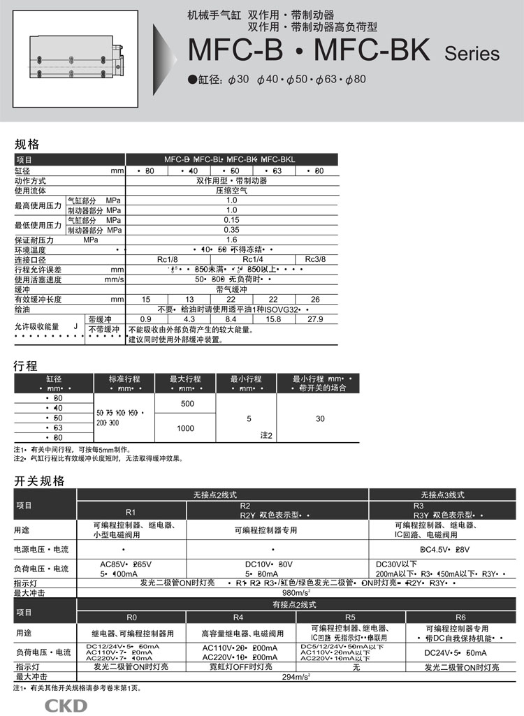 MFC-BKL-00-30B-75,MFC-BKL-00-30B-100,MFC-BKL-00-30B-150,MFC-BKL-00-30B-200,MFC-BKL-FB-30B-100,CKD機械手氣缸