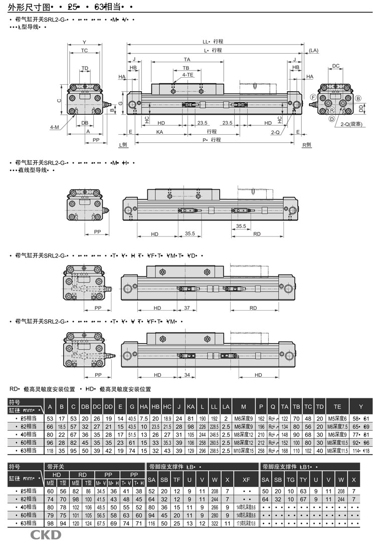 SRL2-G-00-12B-200,SRL2-G-LB-12B-200,SRL2-G-LB1-12B-200,SRL2-G-LB1-100B-700,CKD超級(jí)無(wú)活塞桿型氣缸
