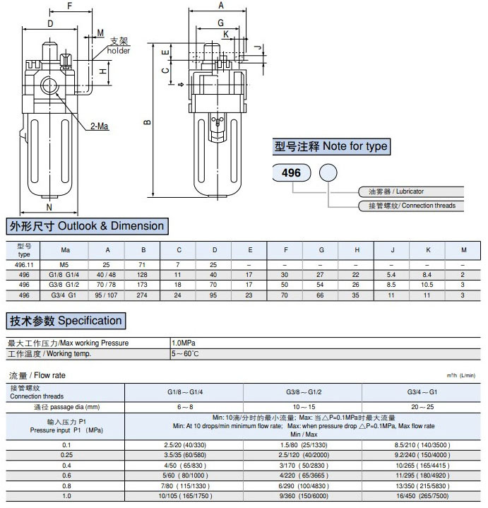 496-G1/8,496-G1/4,496-G3/8,496-G1/2,496-G3/4,496-G1,油霧器