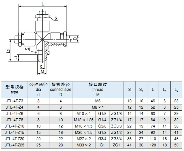 JTL-4T-Z3,JTL-4T-Z4,JTL-4T-Z6,JTL-4T-Z8,JTL-4T-Z10,JTL-4T-Z15,JTL-4T-Z20,JTL-4T-Z25,卡套式四通終端管接頭