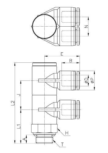 | Model | ∅D | ∅P | T | L1 | L2 | E | A | B | J | H(Hex) | ORIFICE | WEIGHT(g) | EA(BOX) |