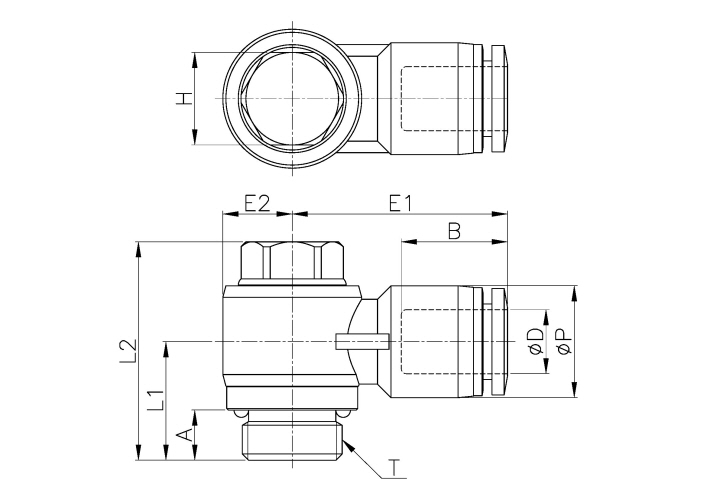 | Model | ∅D | ∅P | T | L1 | L2 | E1 | E2 | A | B | H(Hex) | ORIFICE | WEIGHT(g) | EA(BOX) |