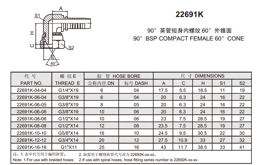 22691K-04-04,22691K-06-04,22691K-06-05,22691K-06-06,22691K-08-06,22691K-08-08,扣壓式軟管接頭
