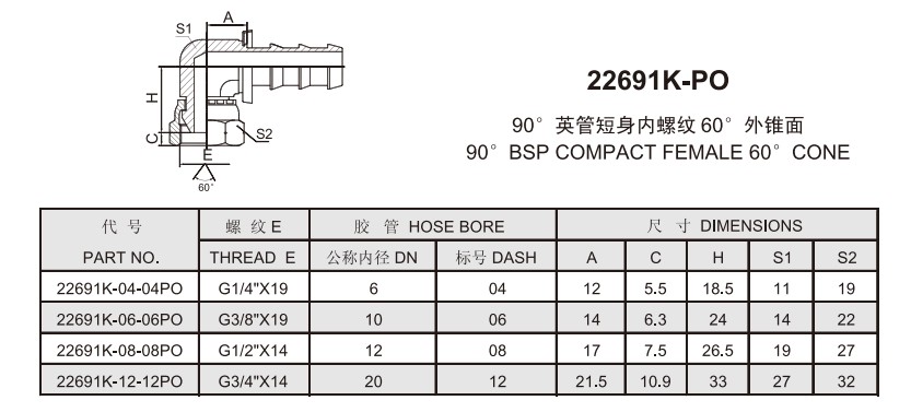 22691K-04-04PO,22691K-06-06PO,22691K-08-08PO,22691K-12-12PO,插入式軟管接頭