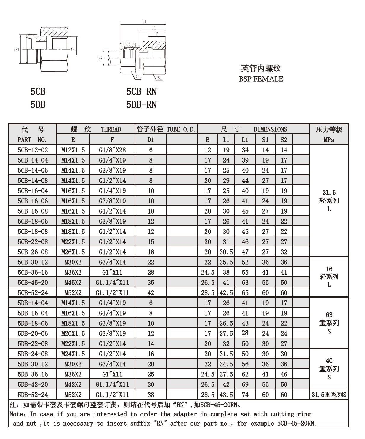 5CB-26-08,5CB-30-12,5CB-36-16,5CB-45-20,5CB-52-24,5DB-14-04,5DB-16-04,