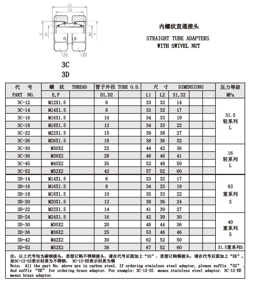 3C-12,3C-26,3C-30,3C-36,3C-45,3C-52,3D-14,3D-24,3D-30,3D-36,3D-42,3D-52,內(nèi)螺紋直通接頭