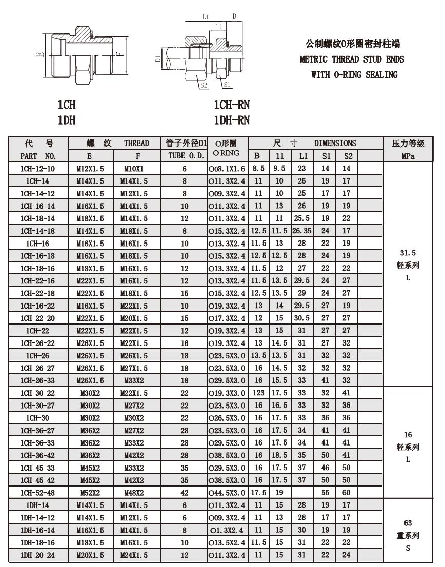 1CH-12-10,1CH-14,1CH-16,1CH-22,1DH-14,1DH-30,1DH-42,1DH-42-48,公制螺紋卡套接頭