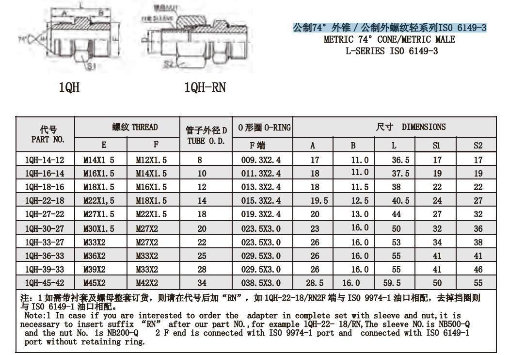 1QH-14-12,1QH-16-14,1QH-18-16,1QH-22-18,1QH-27-22,1QH-33-27,1QH-45-42,錐面密封接頭