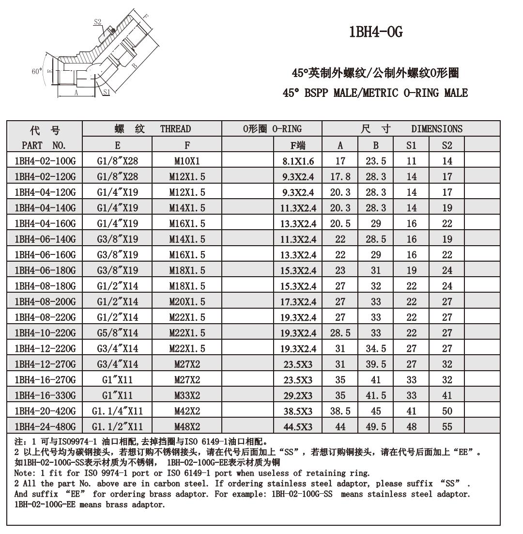 1BH4-02-100G,1BH4-02-120G,1BH4-04-120G,1BH4-04-140G,1BH4-04-160G,1BH4-06-140G,錐面密封接頭