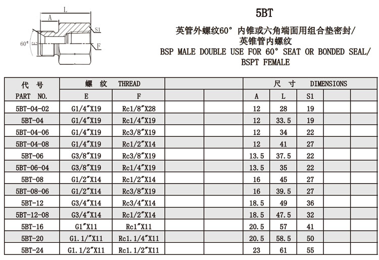 5BT-04,5BT-04-08,5BT-06,5BT-08,5BT-12,5BT-16,5BT-20,5BT-24,內(nèi)螺紋接頭