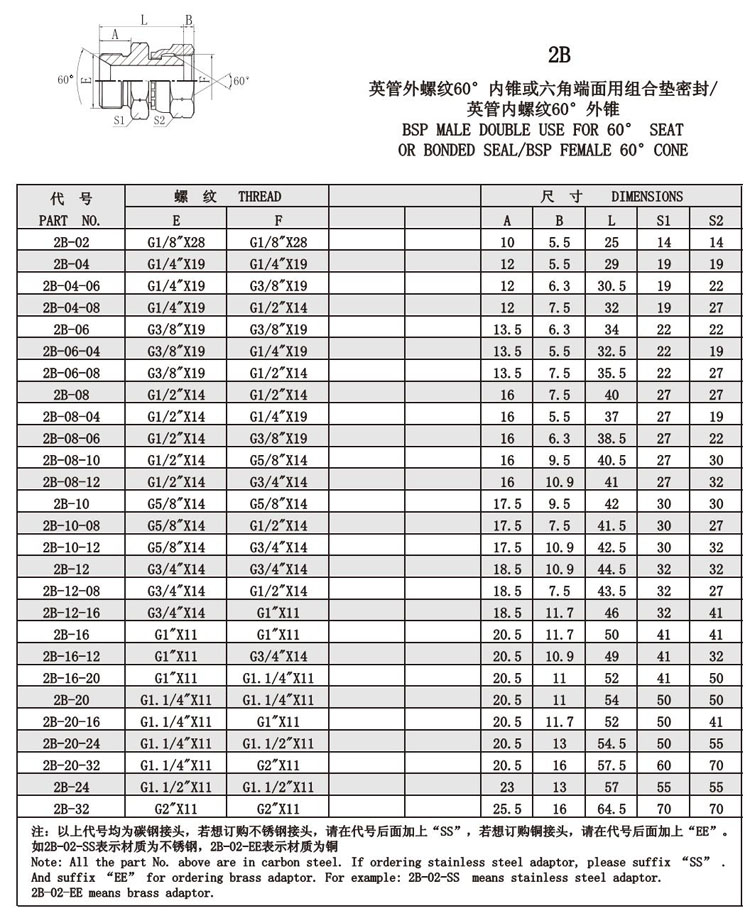 2B-02,2B-04,2B-06,2B-08,2B-10,2B-12,2B-16,2B-20,2B-24,2B-32,2B-04-06