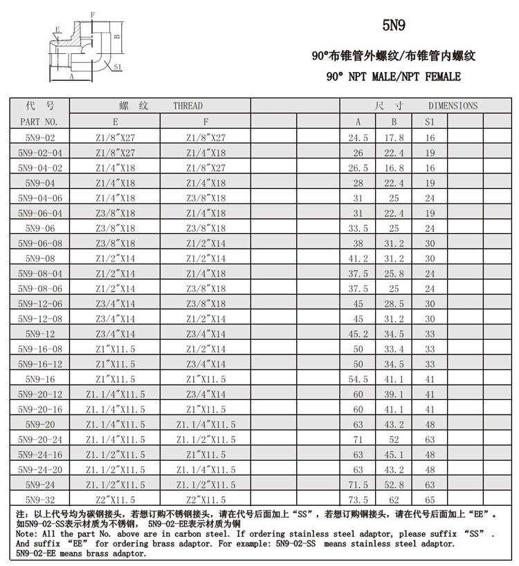 5N9-02,5N9-04,5N9-06,5N9-08,5N9-12,5N9-16,5N9-20,5N9-24,5N9-32,內(nèi)螺紋接頭