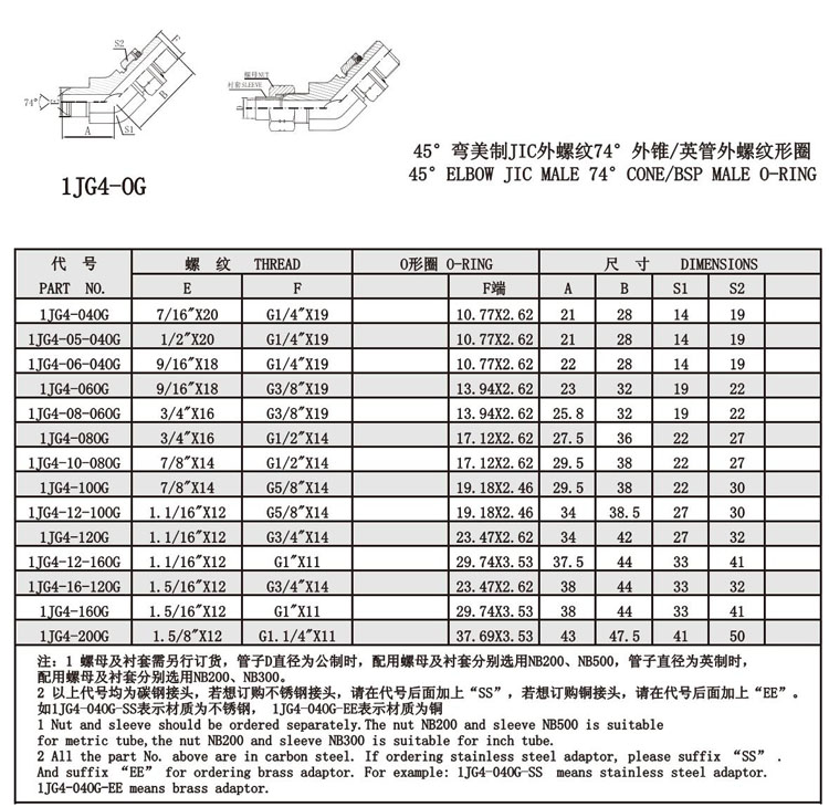 1JG4-040G,1JG4-060G,1JG4-080G,1JG4-100G,1JG4-120G,1JG4-160G,1JG4-200G,美制螺紋74°錐面接頭