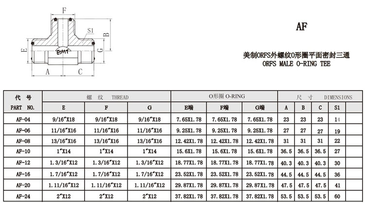 AF-04,AF-06,AF-08,AF-10,AF-12,AF-16,AF-20,AF-24,平面密封三通接頭