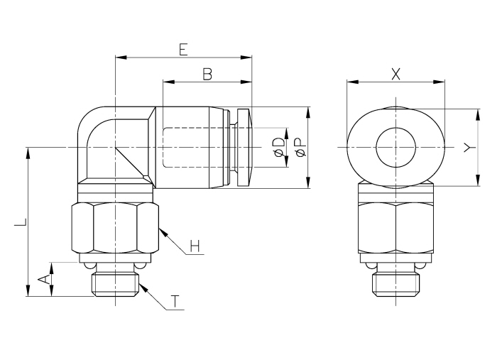 | Model | ¢D | ¢P | T | L | E | A | B | H(Hex) | X | Y | ORIFICE | WEIGHT(g) | BOX(EA) |