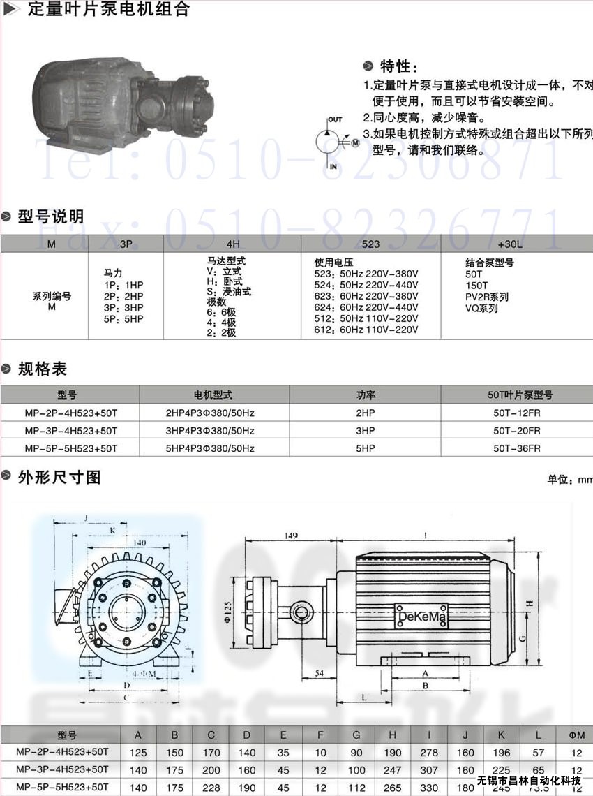 MP-2P-4H523+50T, 定量葉片泵電機(jī)組合