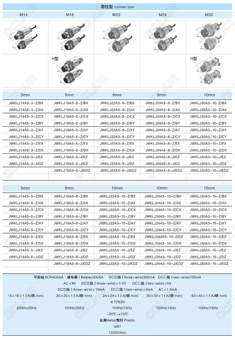 JWKLJ14A3-3-Z/BX,JWKLJ14A3-3-Z/AX,JWKLJ18A3-8-J/EZ,JWKLJ30A3-15-J/EDZ,接近開關(guān)