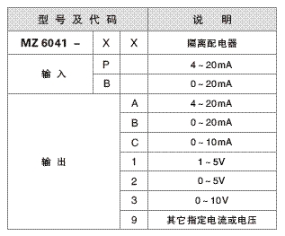 輸入信號:4~20mA;0~20mA