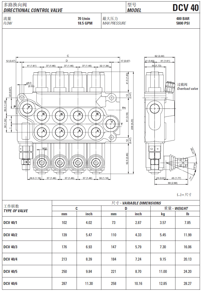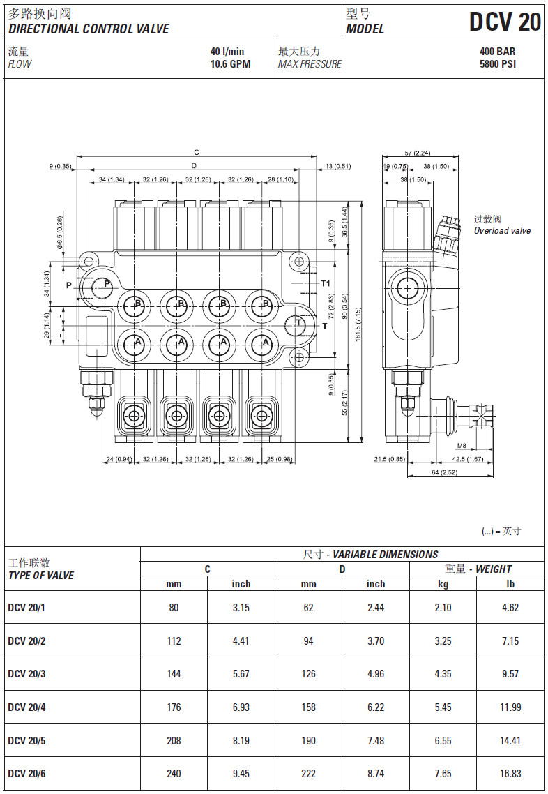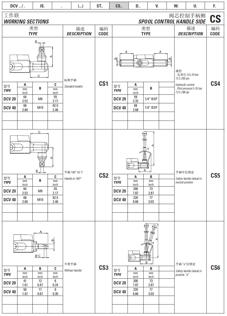 DCV20/1,DCV20/2,DCV20/3,DCV20/4,DCV20/5,DCV20/6,DCV40/1,DCV40/2,DCV40/3,多路換向閥