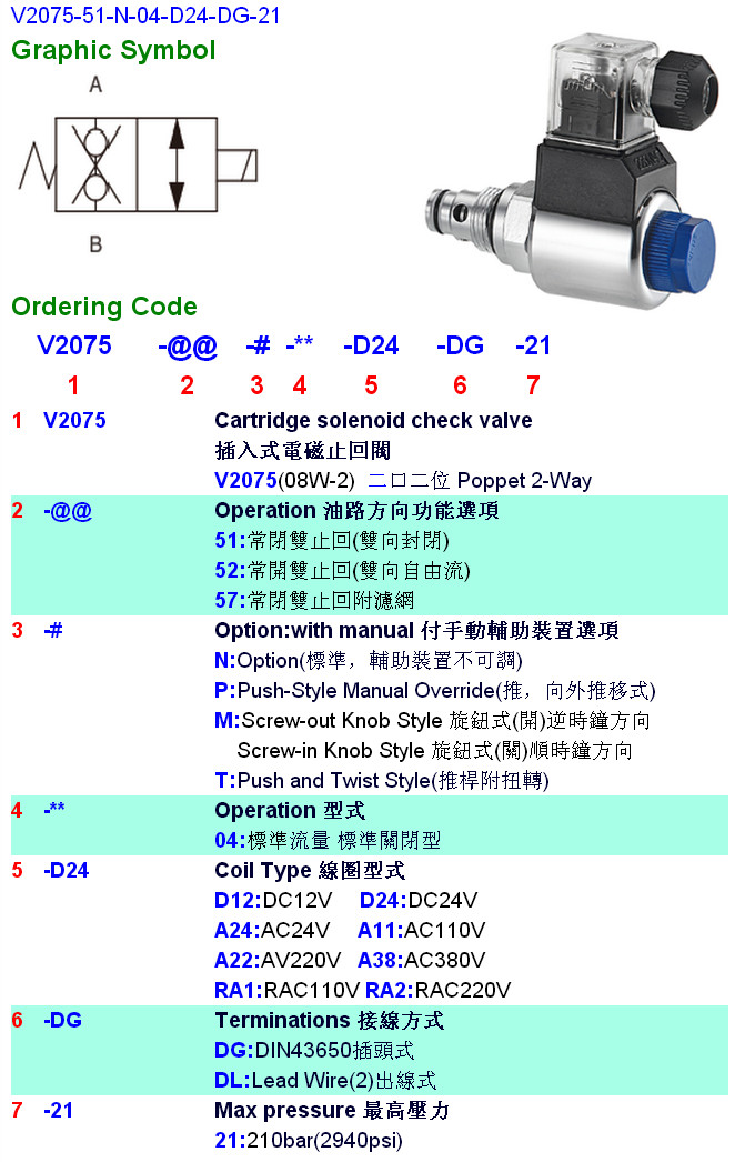 V2075-51-N-04-D24-DG-21,V2075-51-N-04,V2075-52-N-04,V2075-57-N-04,HYDROMAX插入式電磁止回閥