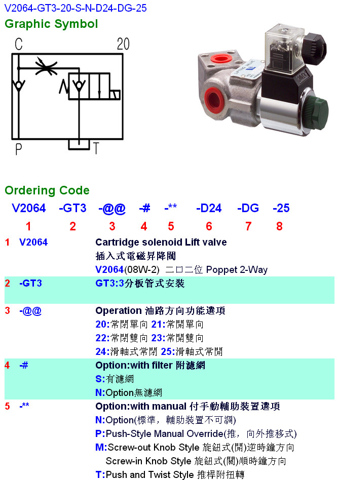 V2064-GT3-21,V2064-GT3-22,V2064-GT3-23,V2064-GT3-24,V2064-GT3-20-N-N-D24-DG-25,HYDROMAX插入式電磁升降閥