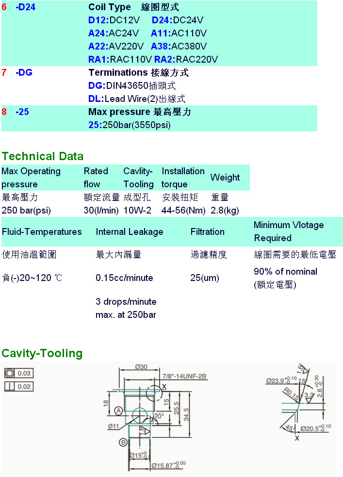 V3071-MA3-20,V3071-MA3-21,V3071-MA3-22,V3071-MB3-23,V3071-MB3-24,V3071-MB3-20-S-P-A22-DG-25,HYDROMAX插入式電磁升降閥