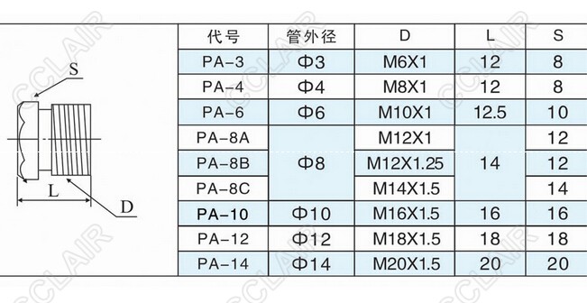PA-3,PA-4,PA-6,PA-8A,PA-8B,PA-8C,PA-10,PA-12,PA-14,油管接頭01