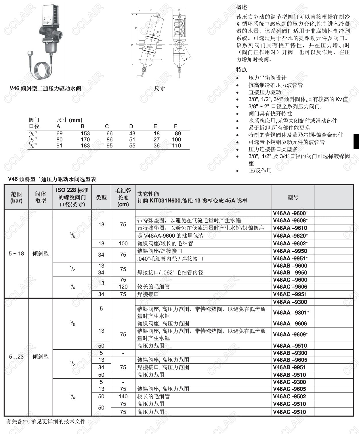 V46AA-9600,V46AA-9608,V46AA-9610,V46AA-9620,V46AA-9602,V46,二通壓力驅(qū)動水閥傾斜型 |